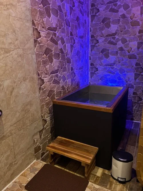 Our newest addition, the Mountain Springs contrast therapy room. Step into a space where ancient wisdom meets modern wellness. This suite invites you to experience the powerful harmony of hot and cold - an immersive journey between the deep heat of the steam sauna and the invigorating chill of the cold plunge.